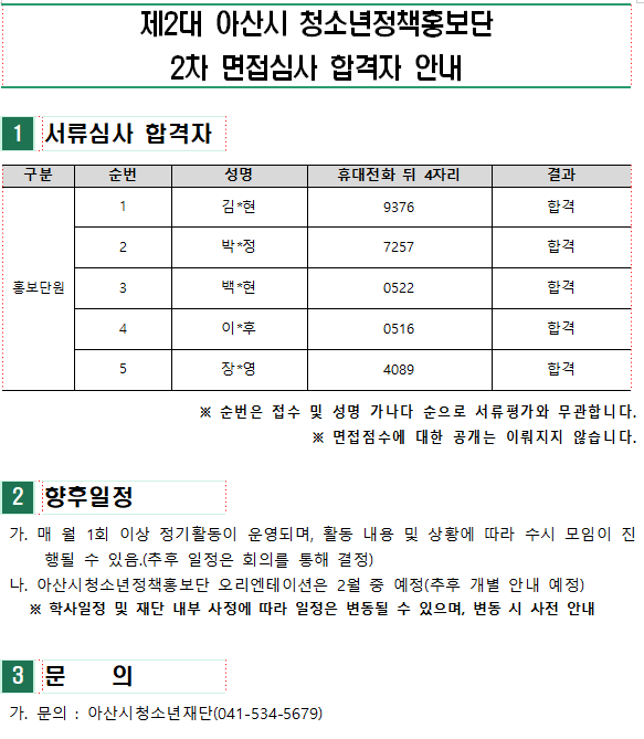 cac643_제2대 아산시 청소년정책홍보단 2차 면접심사 합격자 안내.pdf